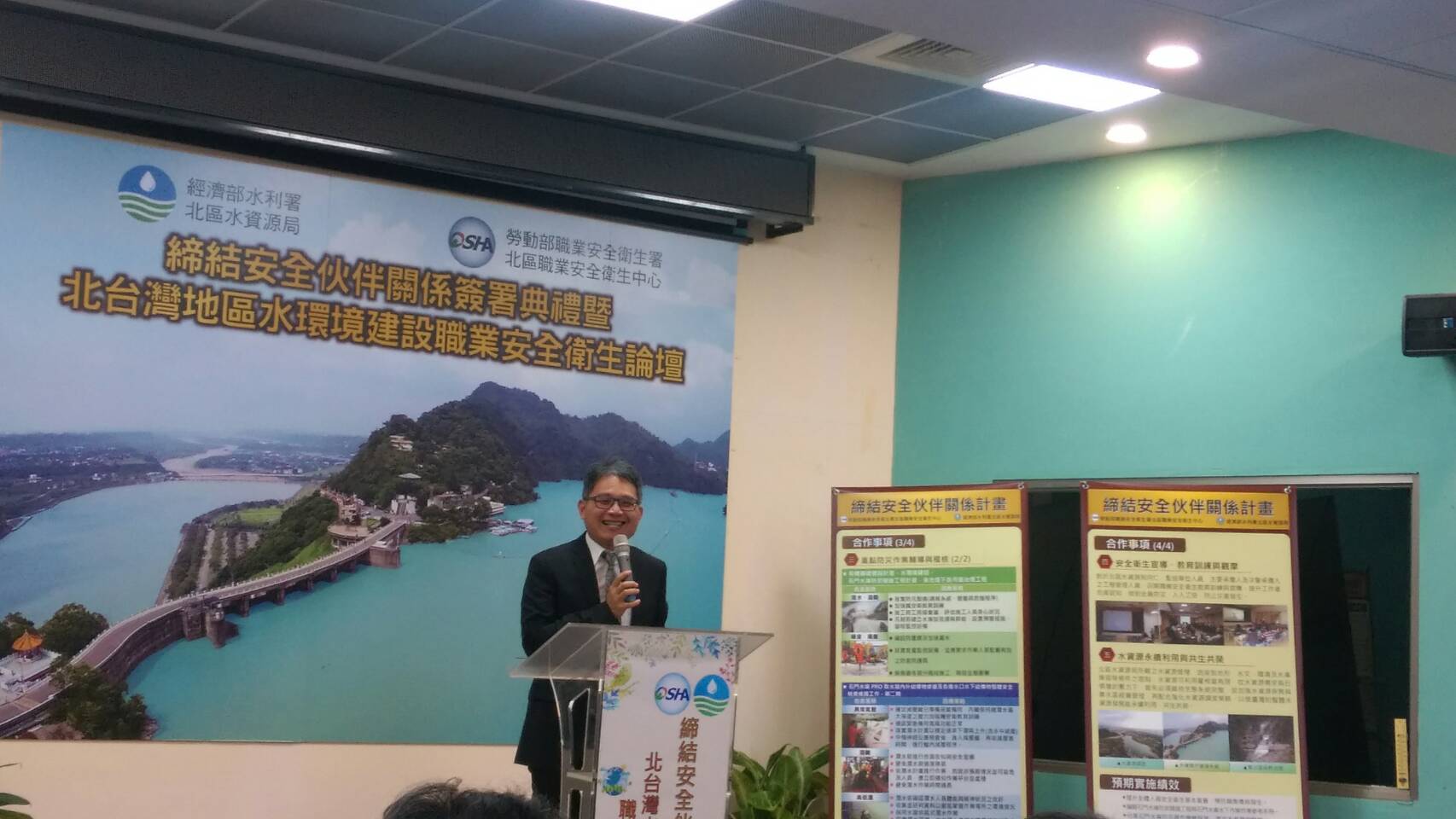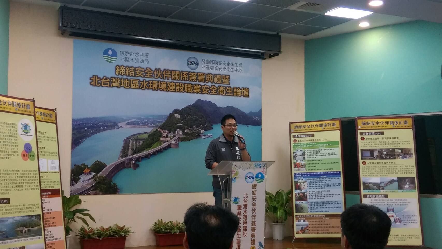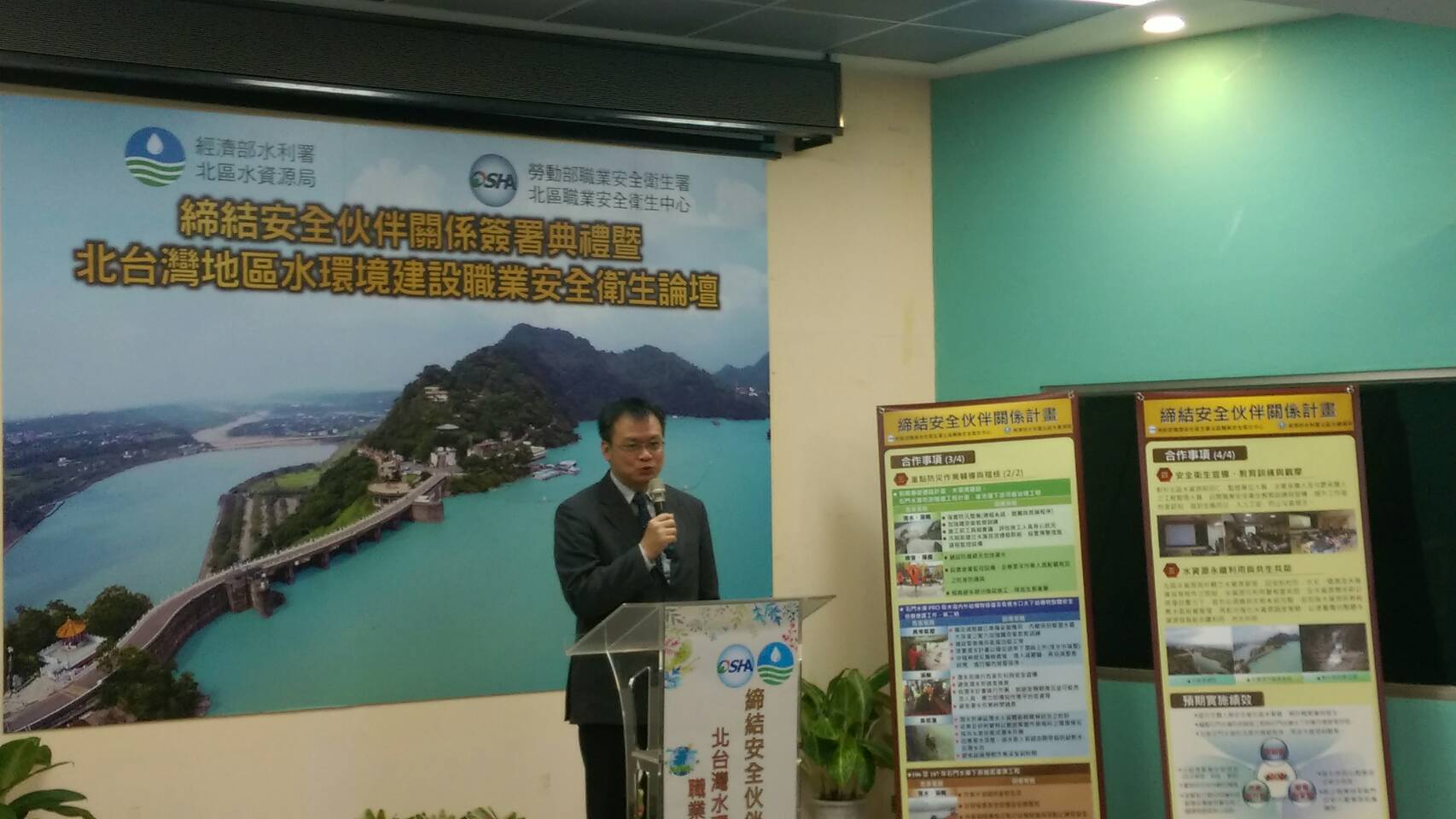 經濟部水利署北區水資源局於今日(20日)與勞動部職業安全衛生署北區職業安全衛生中心共同簽訂「安全伙伴宣言」,締結勞動安全衛生合作關係,並首次舉辦北台灣地區水環境建設職業安全衛生論壇。