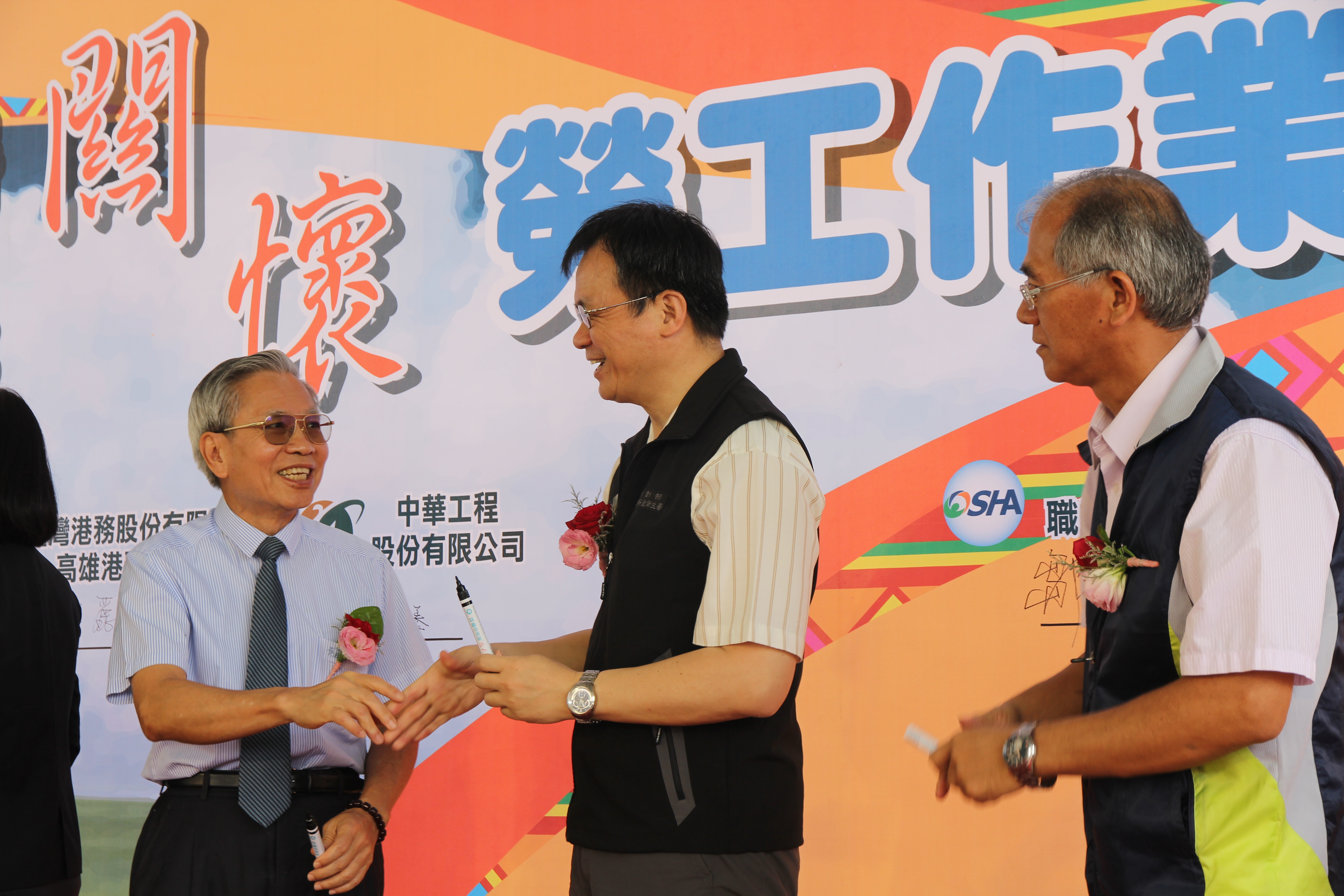 照片1_職安署與中華工程、高雄市勞工局、高雄市勞動檢查處、臺灣港務公司高雄分公司及台灣世曦簽署「營造業個人防護關懷活動」.JPG