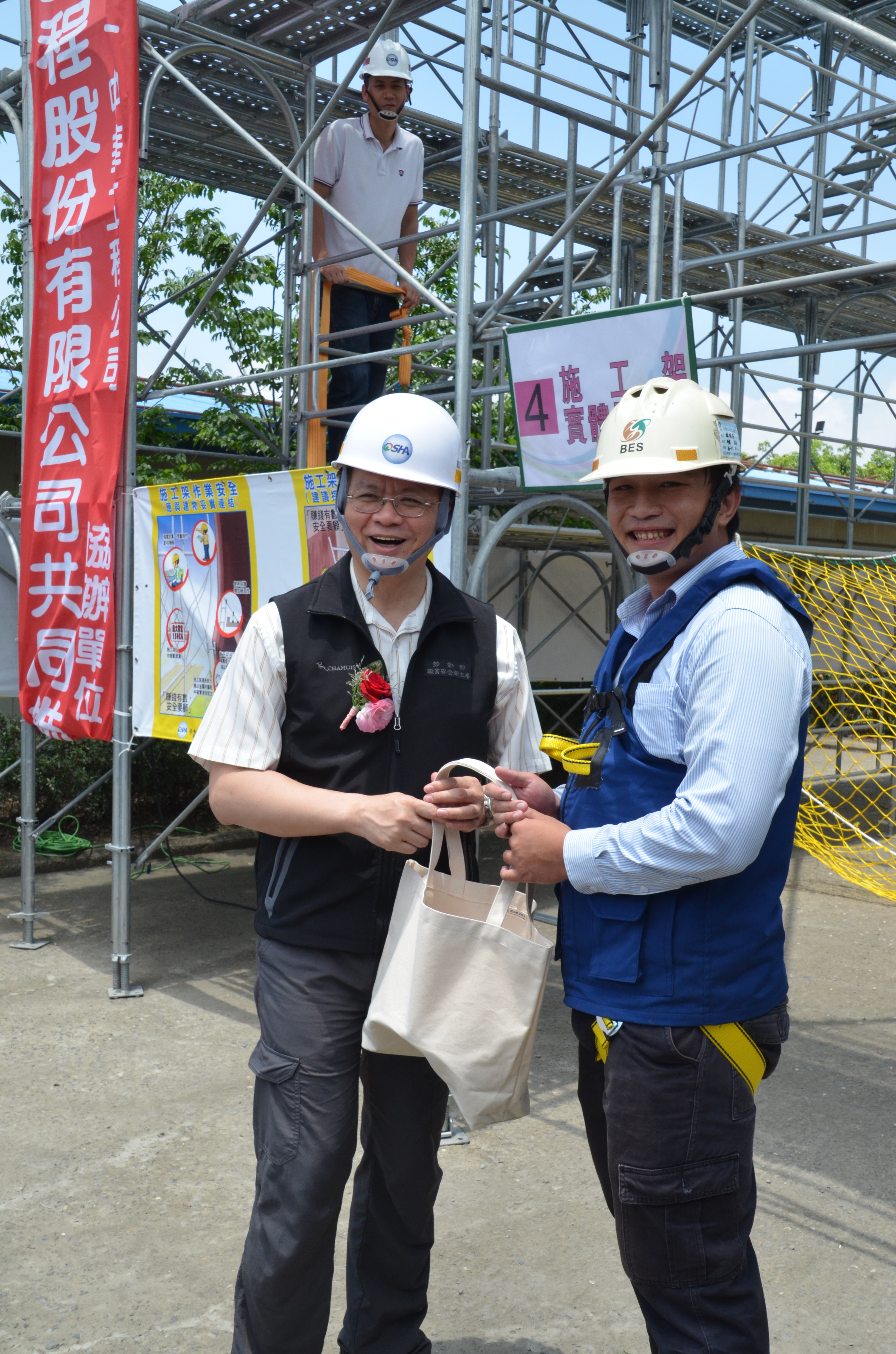 為提升從事營造業之勞工作業安全,針對肇災率較高之原住民及無一定雇主勞工,避免因危害辨識知能不足或經濟上的弱勢,進入營造工地高處作業,未配戴安全帽及安全帶等個人防護具,增加職業災害風險,勞動部職安署特攜手國內大型營造業者中華工程公司,於「高雄港洲際貨櫃中心第二期工程計畫內聯絡道路興建工程」工地現場設置個人防護具借用專區,希望透過此次活動拋磚引玉,鼓勵更多事業單位投入行動,強化勞工作業安全。