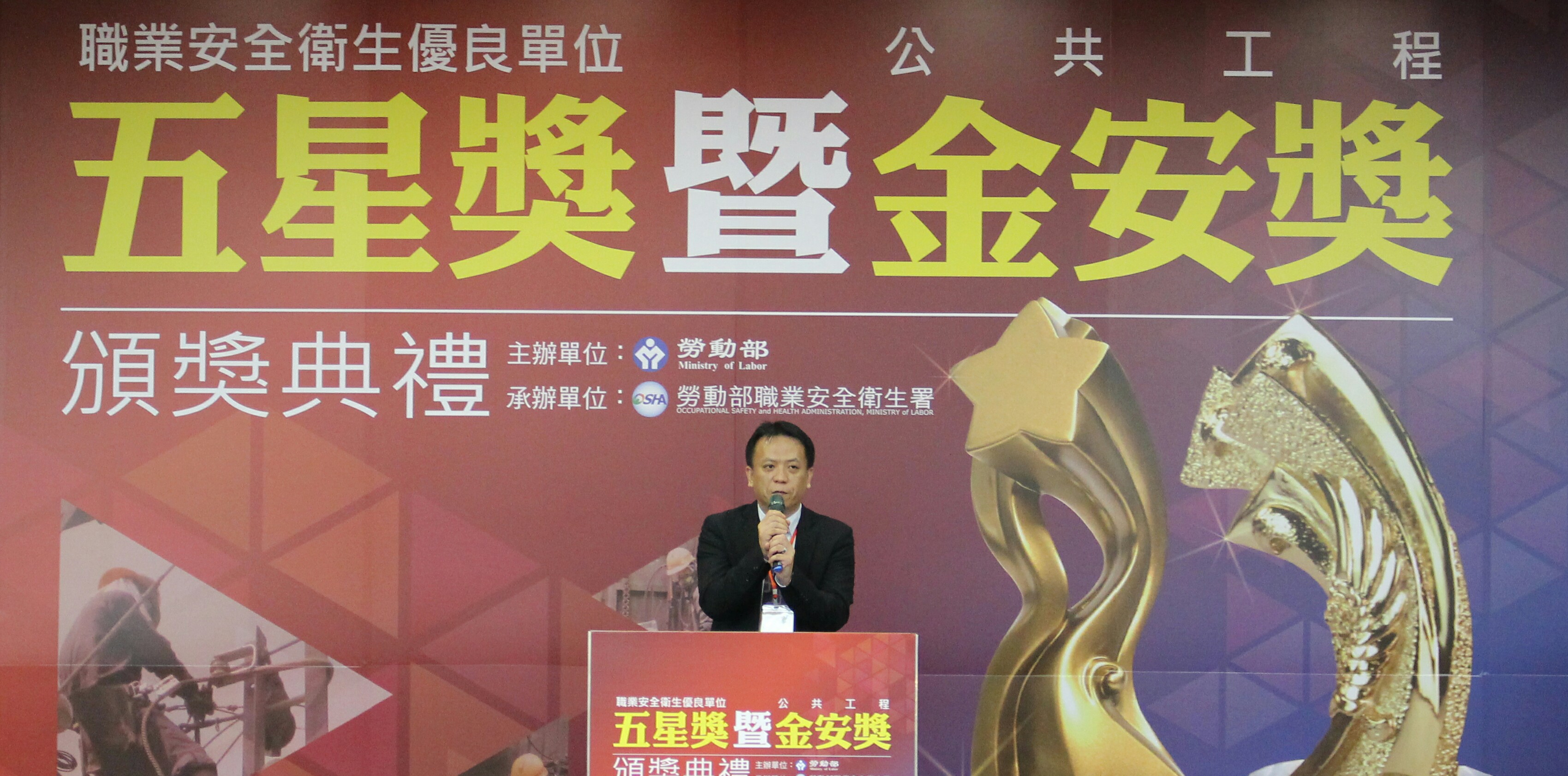 施次長致詞表示,勞動部每年辦理的「優良單位五星獎」與「公共工程金安獎」選拔,是要獎勵推行安全衛生績優的事業單位及公共工程,作為其他業界學習的典範,本次有這麼多優秀得獎的企業及工程團隊,願意作為職業安全衛生的領頭羊,引領其他企業將工安文化內化為企業文化,持續推動優質職場安全工作環境,深感敬佩。又施義芳立法委員身兼土木技師公會理事長,以其工程專業背景,期勉所有工程團隊及勞動部職安署,應積極提升工程安全衛生管理水準,確保公共工程零災害。