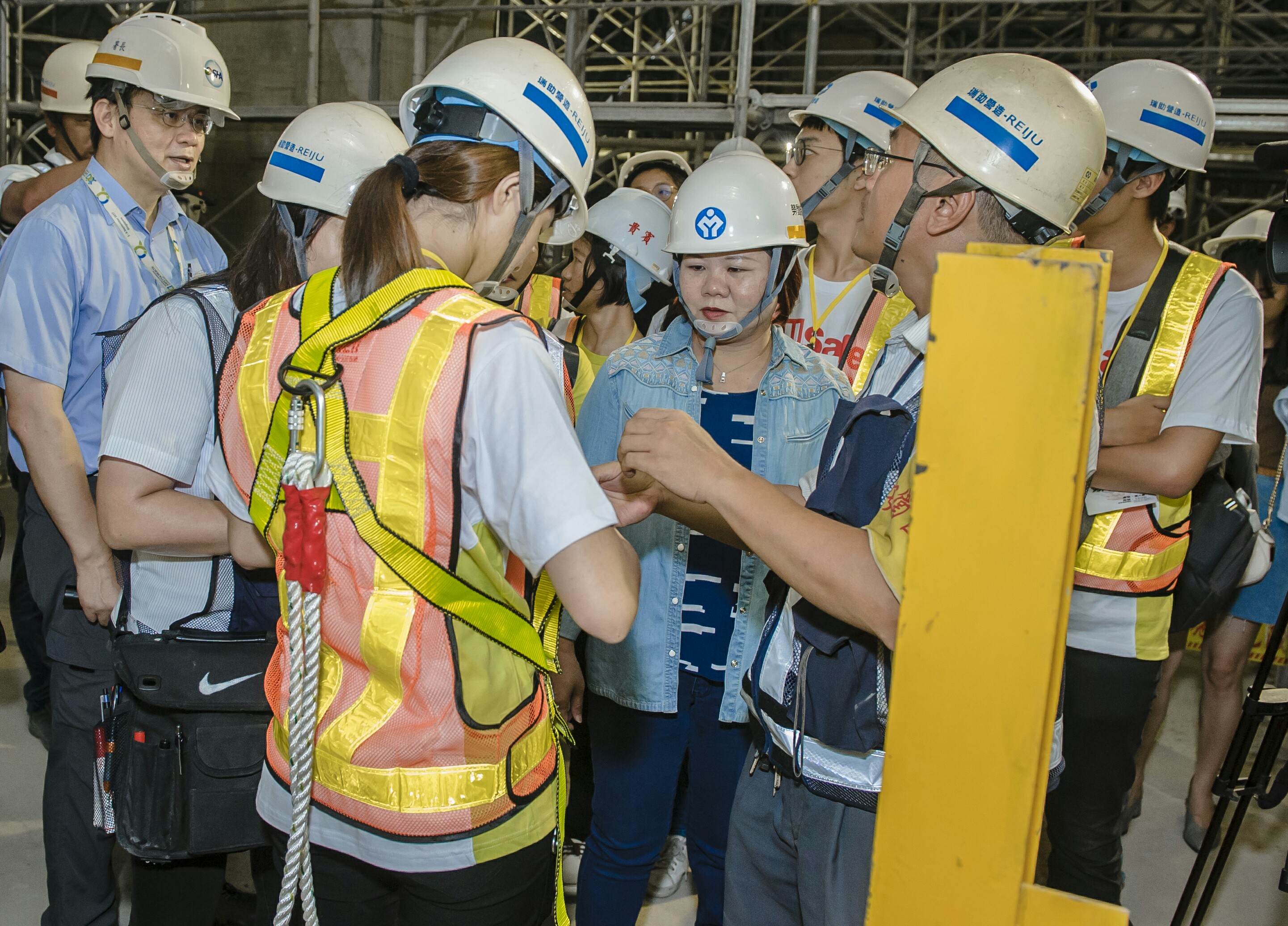 許部長說,根據勞動部統計近5年青少年的職災千人率雖自102年6.94逐步降至106年4.20(降幅39.4%),且職業災害給付件數也減少116人次,但職災千人率仍較平均高,職災給付前3名之行業分別為製造業、營造業及餐飲業,也是本次活動的體驗重點,今日安排學生參訪「北部流行音樂中心興建工程」,主要是要讓學生實際體驗在施工架作業及電梯井吊料作業安全,讓青年學子瞭解營造工地應注意的安全衛生防護重點。