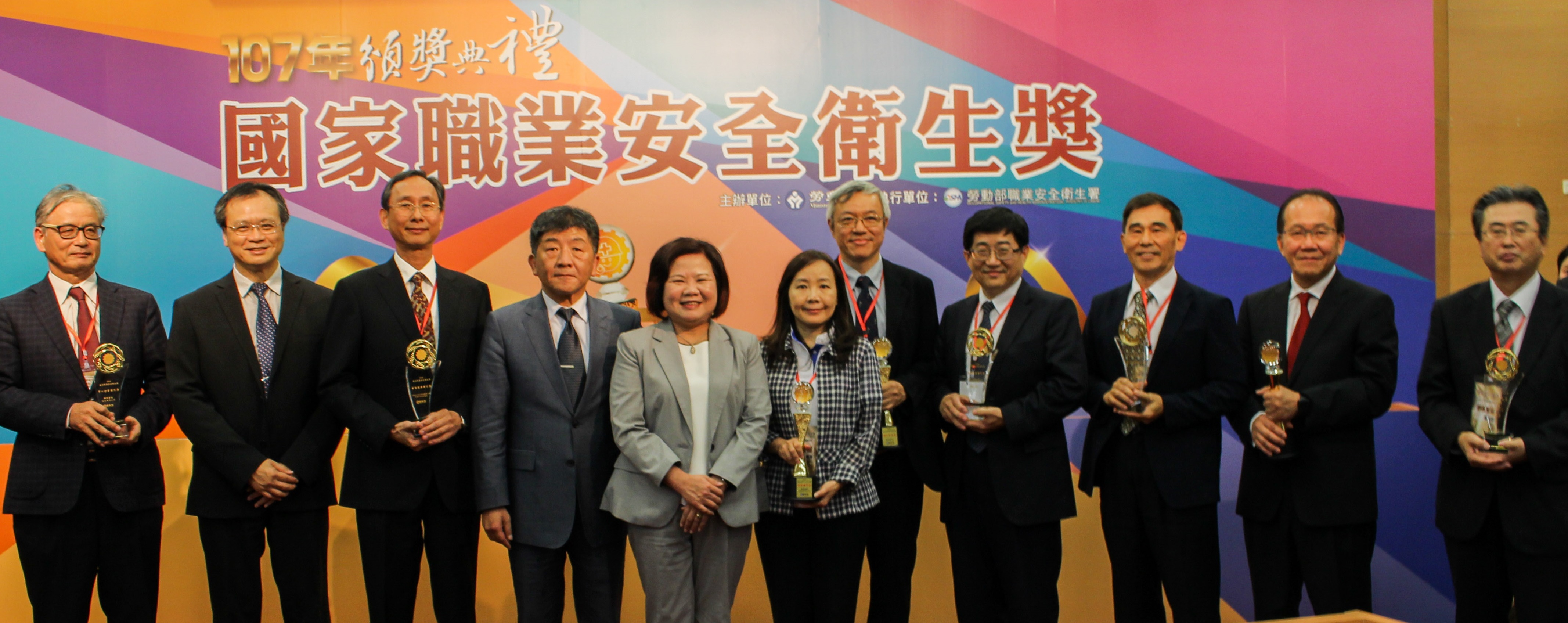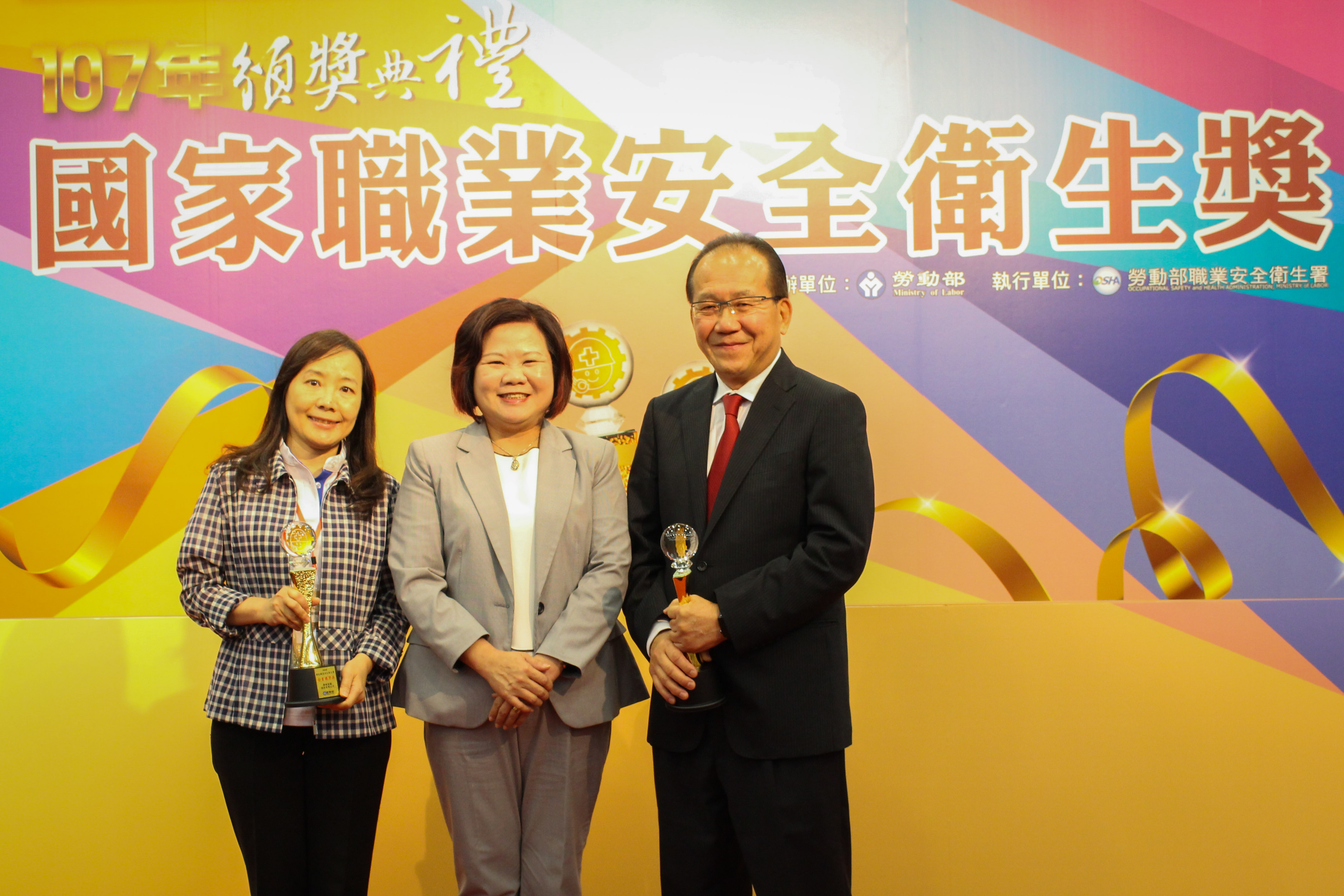 「107年國家職業安全衛生獎」頒獎典禮於11月9日下午2時在新莊聯合辦公大樓國際會議廳舉辦,由勞動部許銘春部長親自頒獎,衛福部陳時中部長受邀出席觀禮,許銘春部長肯定獲獎企業及個人長期致力於建立安全健康職場所付出的用心及努力,期許引領其他企業能持續向上提升職業安全衛生文化,共同為勞工生命安全及健康打拼。