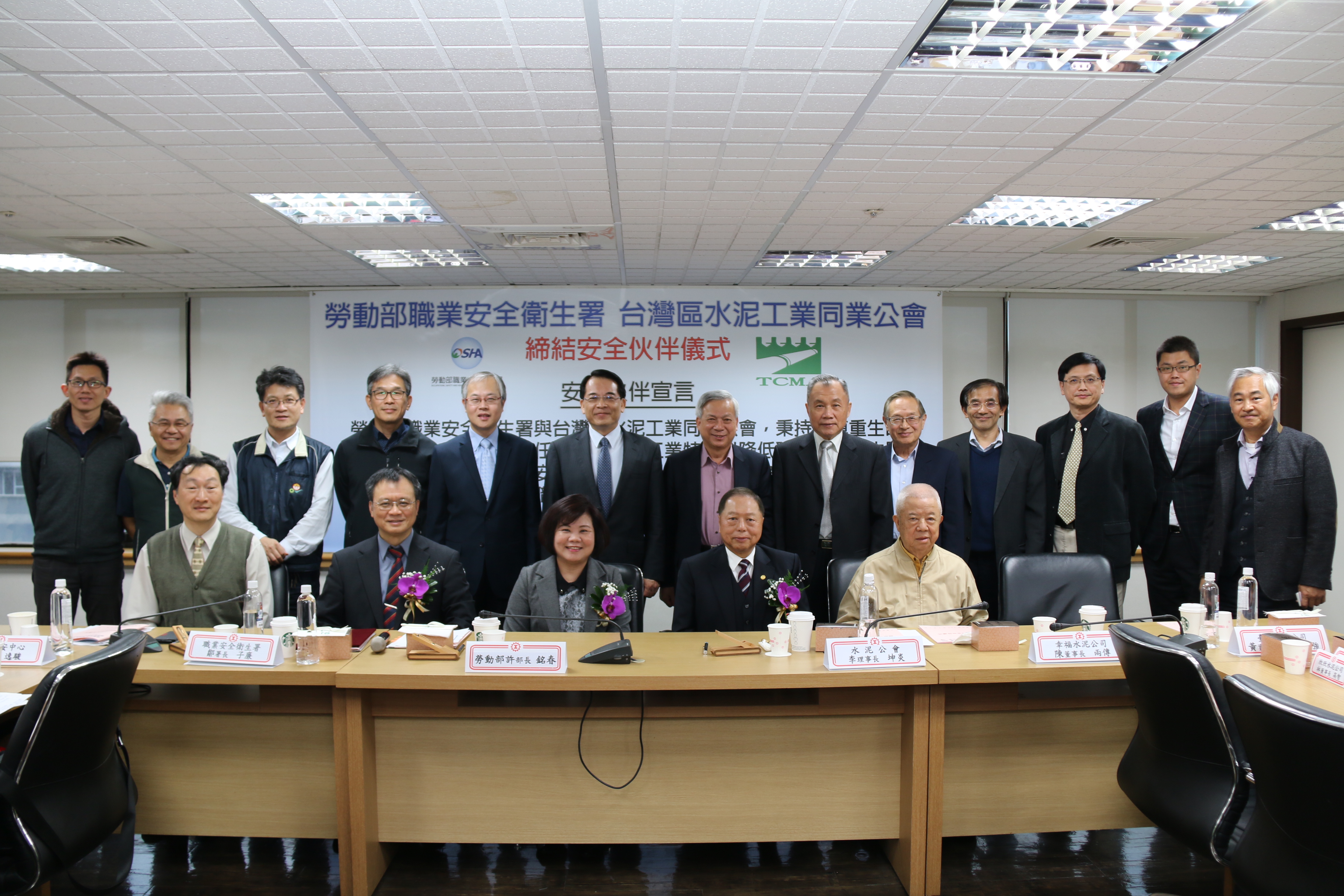 勞動部職業安全衛生署與台灣區水泥工業同業公會為結合防災資源,合作降低職業災害,在勞動部許銘春部長見證下,於今(4/1)日締結為安全伙伴關係,簽署儀式在中華民國全國工業總會舉行,並邀請各大水泥製造廠之高階主管觀禮,由職安署鄒署長子廉與台灣區水泥工業同業公會李理事長坤炎共同簽署安全伙伴宣言,雙方承諾就「強化水泥業自主管理效能」、「輔導建立職業安全衛生管理系統」、「辦理安全衛生自主管理示範觀摩及論壇」、「推廣職安衛教育訓練」、「編訂高風險作業安全指引及手冊」等工作重點進行合作,以全面提升水泥工業及預拌工業職業安全衛生自主管理能力,建立水泥產業職業安全衛生文化。