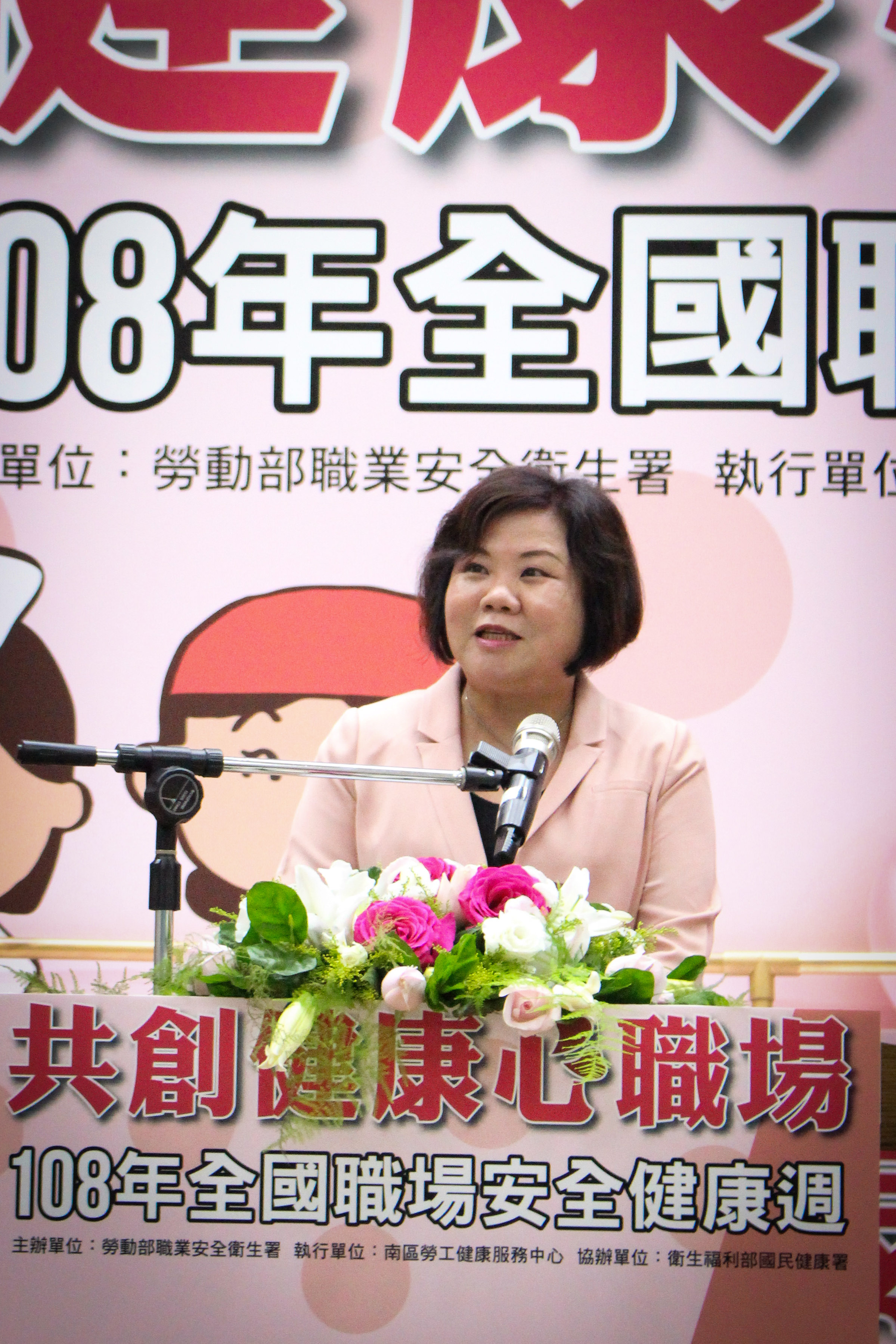 為喚起國人對職場安全及健康權益的重視與關懷,勞動部配合「428世界職業安全衛生日」,於今(23)日舉辦「職場安全健康週啟動大會」,並邀請立法委員吳焜裕委員、郭國文委員、陳靜敏委員、衛福部國健署王英偉署長共同參與啟動儀式,現場企業齊聲吶喊「提升健康勞動力,共創職場競爭力」,凝聚為勞工共創職場健康「心」時代氣氛,期許用心為勞工打造「安心、健康」的工作環境。
