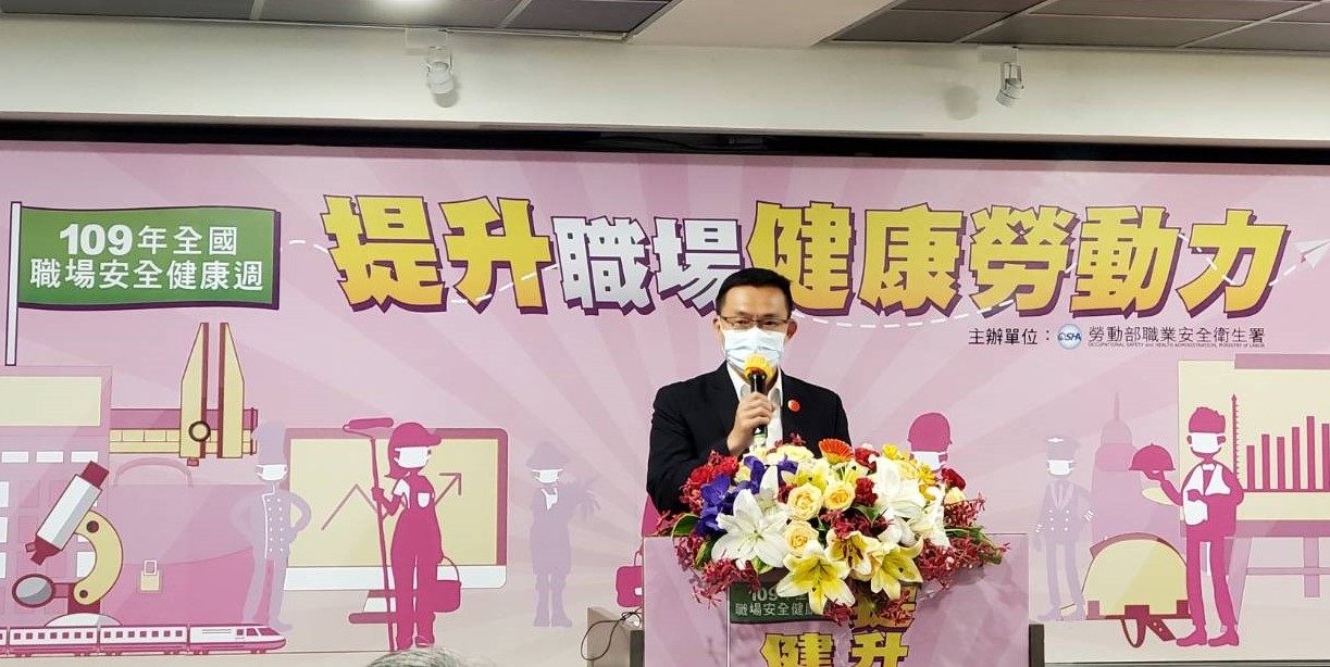 4月28日是國際勞工組織(ILO)訂定之「世界職業安全衛生日」,勞動部配合舉辦「全國職場安全健康週」啟動活動,今(109)年因應嚴重特殊傳染性肺炎(COVID-19)疫情,特別在Facebook網路直播舉辦「提升職場健康勞動力研討會」,林政務次長明裕親臨直播現場,呼籲企業應做好職場安全衛生及防疫工作。