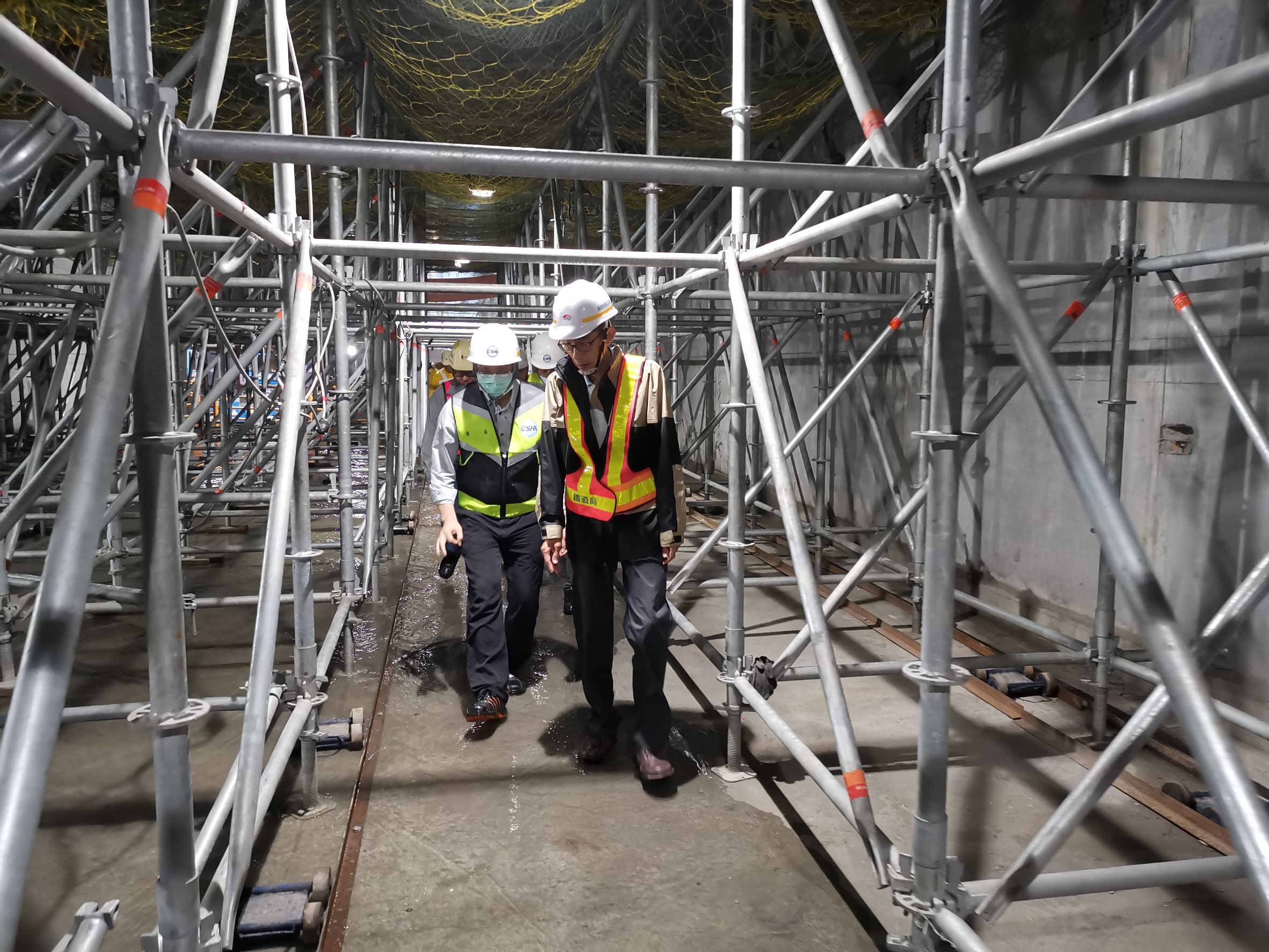 鄒子廉署長與黃鳳岡處長巡查隧道滑動模板組立情形.jpg