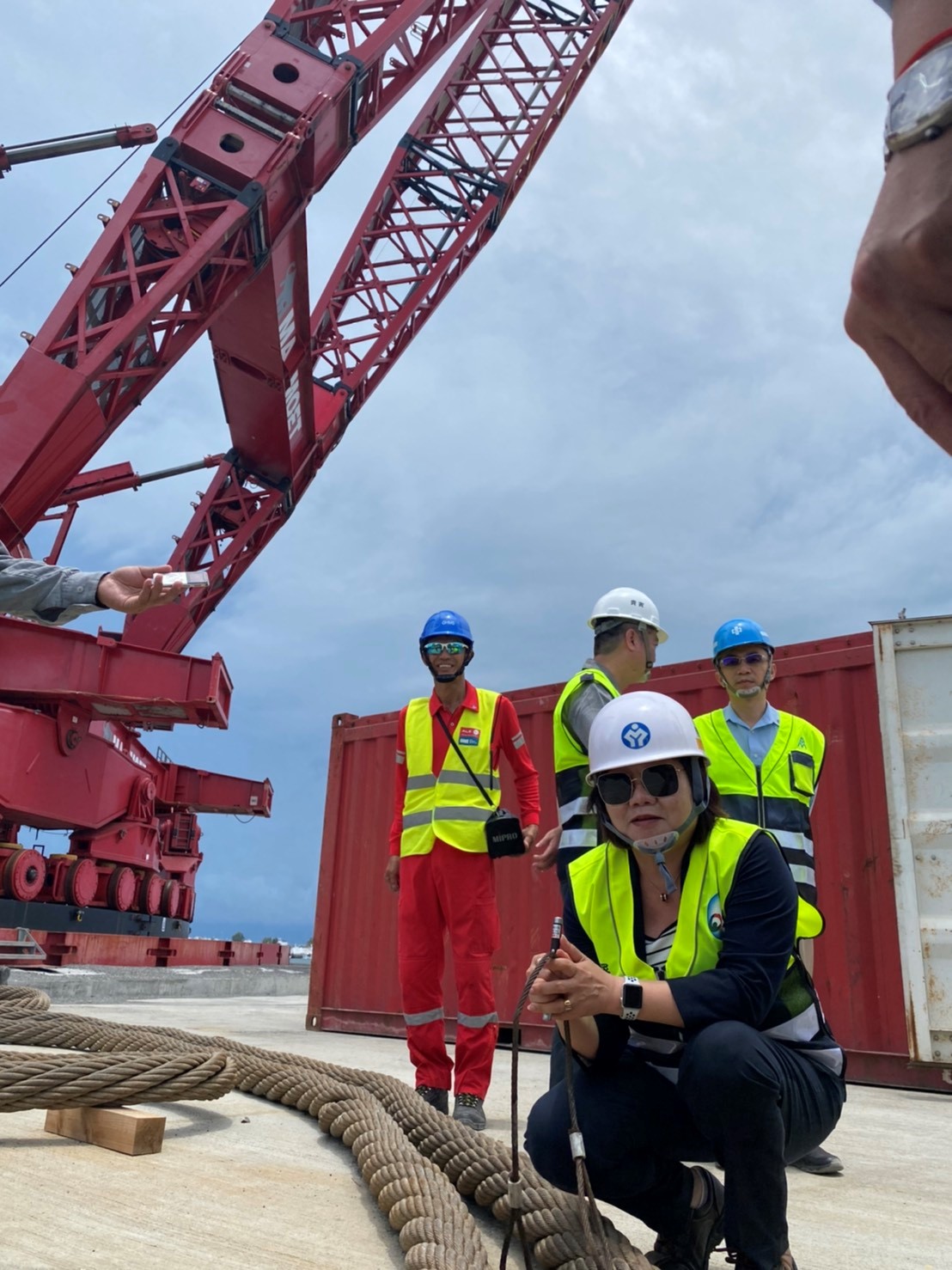 許部長對興達海洋基礎公司引進歐洲廠商產製技術,每支離岸風機水下基礎高達80公尺,重量超過1,200公噸,組裝作業規模大風險高,結合國內供應鏈約20家廠商,致力發展離岸風電在地產業鏈技術升級,帶動2,000多位勞工之就業機會相當關心,並對於該項水下基礎組裝作業的安全衛生設施優於原技術移轉廠商,強化勞工作業安全性,予以肯定。此外,該工程在重件碼頭設置全亞洲最大吊升荷重3,000公噸吊車,參據職安署積極推動之營造施工模組化,危險評估先行,按部就班模組施作,應可有效改善離岸風力發電工程高危險、重體力的工作環境。