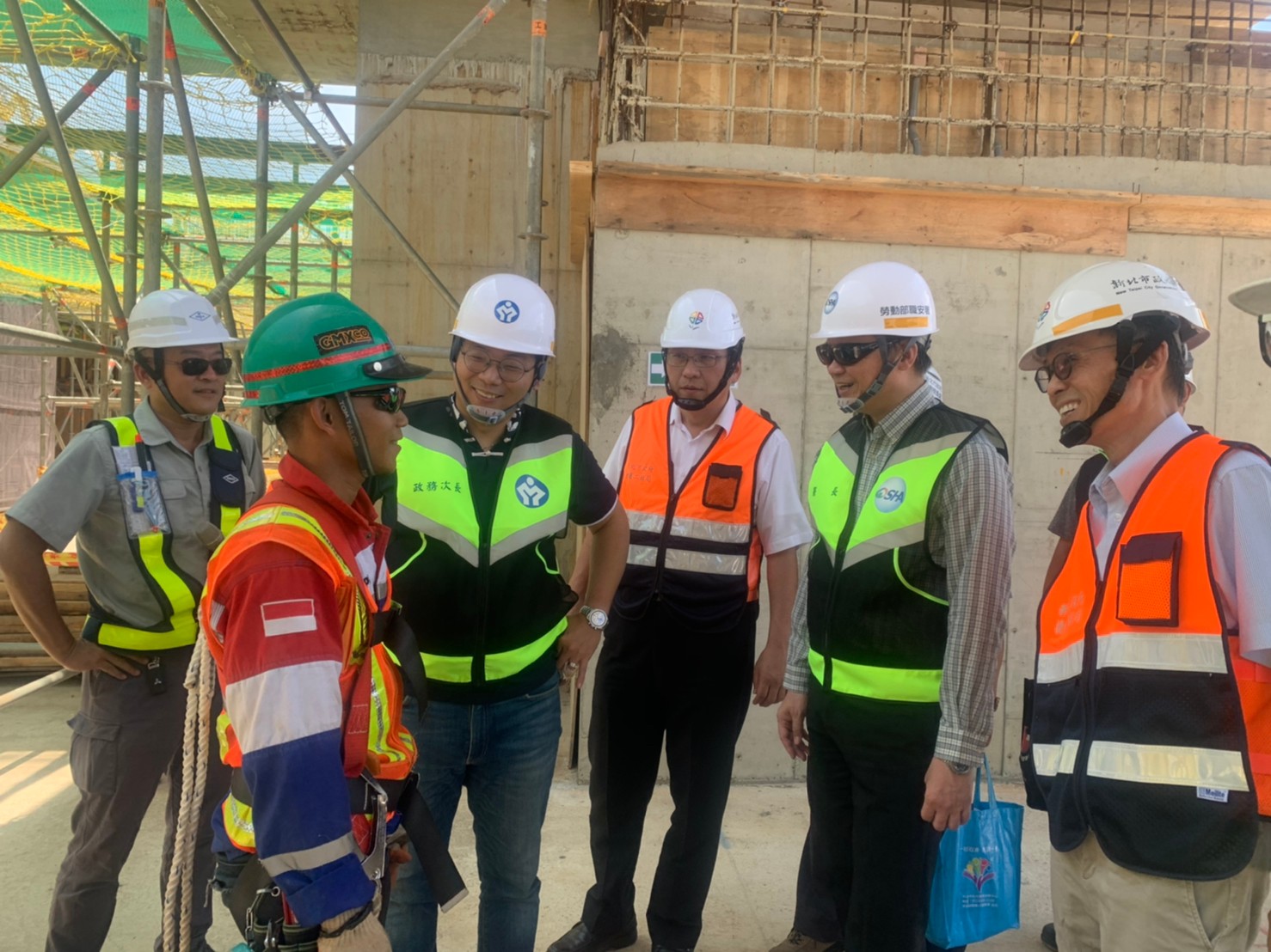 王安邦次長於現場除主動關心詢問勞工朋友工作實況及夏季熱危害之預防情形,特別提醒勞工朋友要「多喝水」及「適時休息」,並對本工程施工團隊開工迄今保持無重大職災之優良紀錄,予以肯定。也期許施工團隊持續投注資源,提升安全衛生管理水準,促進職場安全文化,善待勞工,創造勞資共榮及安全保證的工程典範。